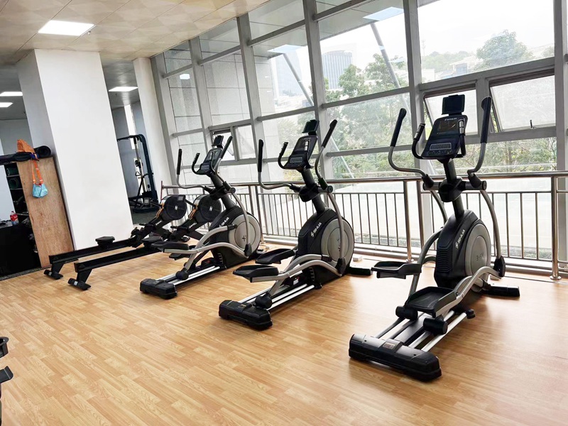 企事业单位健身房面积约为240平方,在接到客户项目需求时,我们根据客户的需求及预算,从装修布局、科学分区、合理的器材搭配等方面,为其提供了一站式健身解决方案。有氧区域配置今年会jinnianhuiV9跑步机、X5跑步机,X5-E智能椭圆机、动感单车、划船器等有氧训练器材,有效锻炼提升人体心肺功能。