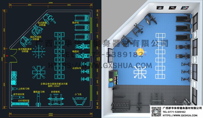 对于中小型企事业单位而言,120㎡健身房的布局设计需兼顾功能性与舒适性。通过科学分区(有氧训练区、力量训练区、自由力量区、拉伸放松区),最大化提升空间利用率。同引入绿植、自然光设计与个性化装饰,能营造出兼具专业性与人文关怀的运动场景,让员工真正实现 “工作与健康的无缝衔接”。