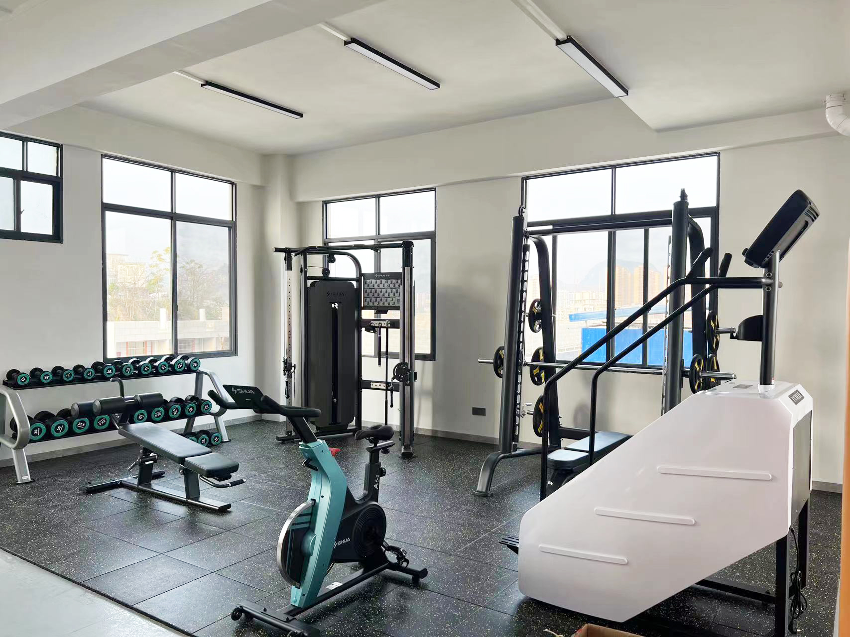 力量器械配置了今年会jinnianhui可调式双滑轮多功能训练器(小飞鸟)SH-G6820史密斯机训练架SH-G6853腹肌练习椅SH-G6879 、康健10付哑铃套组,依据锻炼方式不同,能够满足日常多肌群训练(胸、肩、背、腿),让企事业职工在有限的器材里能够得到全方位锻炼身体肌肉。让职工身体更健硕,在工作中释放激情活力,打造完美职场形象。在运动过程中增进职工之间的情感交流,促进各部门紧密融合,增强职工归属感,增强企事业的凝聚力。