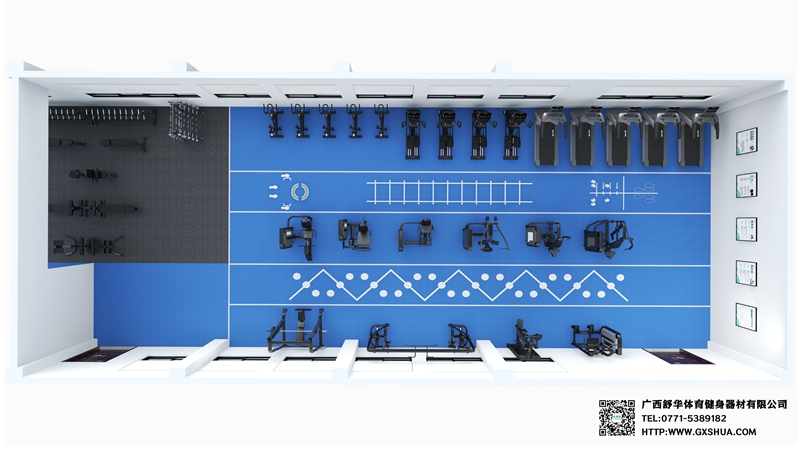 此方案要求面积小于216m²,适用于企事业单位、酒店会所、楼盘社区、学校等健身场所,能满足25-35人同时健身使用。(方案根据场地空间大小、预算、产品需求等进行配置仅为启发性参考)